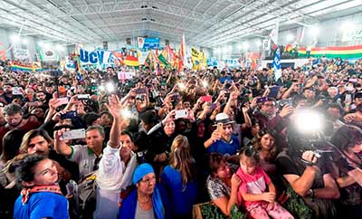 Por eso considera que “el mensaje político no se reduce a la cuestión electoral, también tiene el objetivo de llamar a la unidad del campo popular y de las organizaciones en toda Latinoamérica para la reconstrucción de la Patria Grande. Tenemos que organizarnos para parar la avanzada del neoliberalismo, para que Evo Morales sea reelegido y para que Cristina gane”.