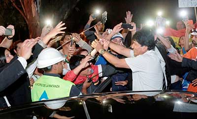 Sin embargo, más allá de los necesarios intercambios bilaterales, tanto para la comunidad como para la militancia el plato fuerte estuvo en el contacto directo establecido ese domingo por Evo, lo cual es siempre una bocanada de aire fresco (https://www.prensarural.com.bo/portada/evo-llego-a-buenos-aires-en-medio-de-gran-expectativa/) para una sociedad atosigada por la crisis y el desolador panorama a futuro. De allí que Iber se extendió acerca del trasfondo doblemente político de la visita, con las elecciones presidenciales de ambos países en el horizonte inminente: