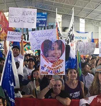 “Como jóvenes ya no somos engañados, sabemos que el enemigo del pueblo es el neoliberalismo que sólo genera hambre y pobreza y estamos cansados de lo que está viviendo el mundo. Por eso nuestra tarea es discutir, disputar y proyectar para construir el socialismo, porque el 20 de octubre en Bolivia y una semana después en Argentina se juega un mayor avance del neoliberalismo o un aire más para la región. Hay mucho en juego, los pueblos tenemos que tener memoria, acompañar a nuestros líderes para seguir luchando y recuperar la Patria Grande”.