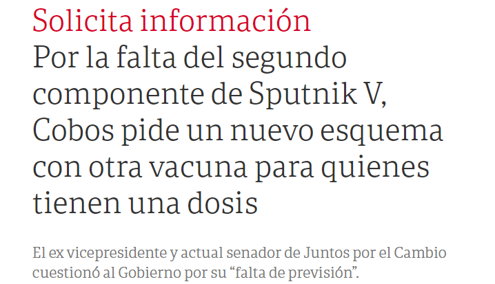 Entre el miércoles 21 y el viernes 23 de julio, el senador nacional Julio Cobos recorrió la parte del león de la concentración mediática pidiendo, con todas las letras, que, como la segunda dosis de la vacuna Sputnik V está demorada, se vacune todo de nuevo. Así nomás.