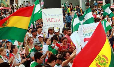 «Los últimos hechos en el país tienen cierta maquinación estadounidense, cuya embajada apostó por el candidato de ‘Bolivia dice no’, Óscar Ortíz. Luego se ha dado cuenta del fracaso de ese liderazgo y ahora, ya que Carlos Mesa no es un personaje político atractivo, apuesta directamente a Luis Fernando Camacho, del Comité Cívico pro Santa Cruz, que es un líder más radical, con un discurso emocional que está pegando y ha desplazado al resto».