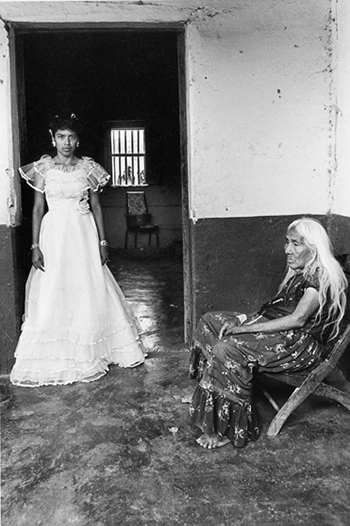 En el año 1979, fue invitada por el artista Francisco Toledo a realizar fotografías en el pueblo de Juchitán, de la cultura zapoteca en Oaxaca, en el sureste mexicano. Comunidad donde el matriarcado y las mujeres se manifiestan a pleno. Pensemos en la fotógrafa que provenía de una clase acomodada que no tenía relación con el México campesino, humilde, alejado geográficamente, con otras costumbres y cultura. Sin embargo, y a pesar de las diferencias, ella puede hacer rápidamente enlace con las mujeres de la comunidad, logra sus complicidades y la entrada a ese mundo mujeril con todas sus expresiones. La serie iniciada en 1979 y continuada hasta 1988 tuvo como resultado la publicación del libro ¨Juchitán de las Mujeres¨ en 1989, un maravilloso trabajo sobre las mujeres, sus costumbres, ropajes, fiestas y ceremonias. Es famosa la foto de la mujer con las ranas en su cabeza, ¨Nuestra señora de las ranas¨, que ha dado la vuelta al mundo y lo sigue haciendo.