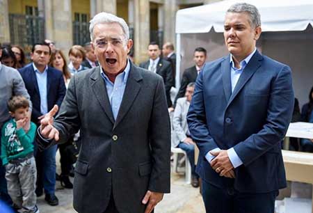 Perteneciente al partido Centro Democrático, liderado por el ahora congresista Álvaro Uribe y principal detractor de los consensos conseguidos en Cuba, el mandatario objetó la ley estatutaria de la Jurisdicción Especial para la Paz (JEP) o justicia transicional. Tales impugnaciones fueron rechazadas por el Congreso, que obligó al ocupante de la Casa de Nariño a sancionar la norma.