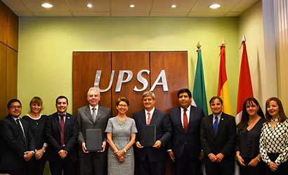 7: Firma de convenios entre USIL y UPSA, agosto de 2018. Diez Canseco está en el centro.