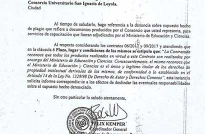 Fuentes en Lima aseguran que existe un proceso criminal en marcha contra la Universidad San Ignacio de Loyola por el plagio de material del Ministerio de Educación de Perú. Además, han resultado perjudicados los maestros que participaron en dicha capacitación, ya que no le son reconocidas las acreditaciones que les permitiría un ascenso en la escala magisterial y una mejora en sus remuneraciones.